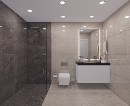 Квартиры поставляются с системой подогрева пола, системой умный дом и системой внешних жалюзи во всех комнатах.