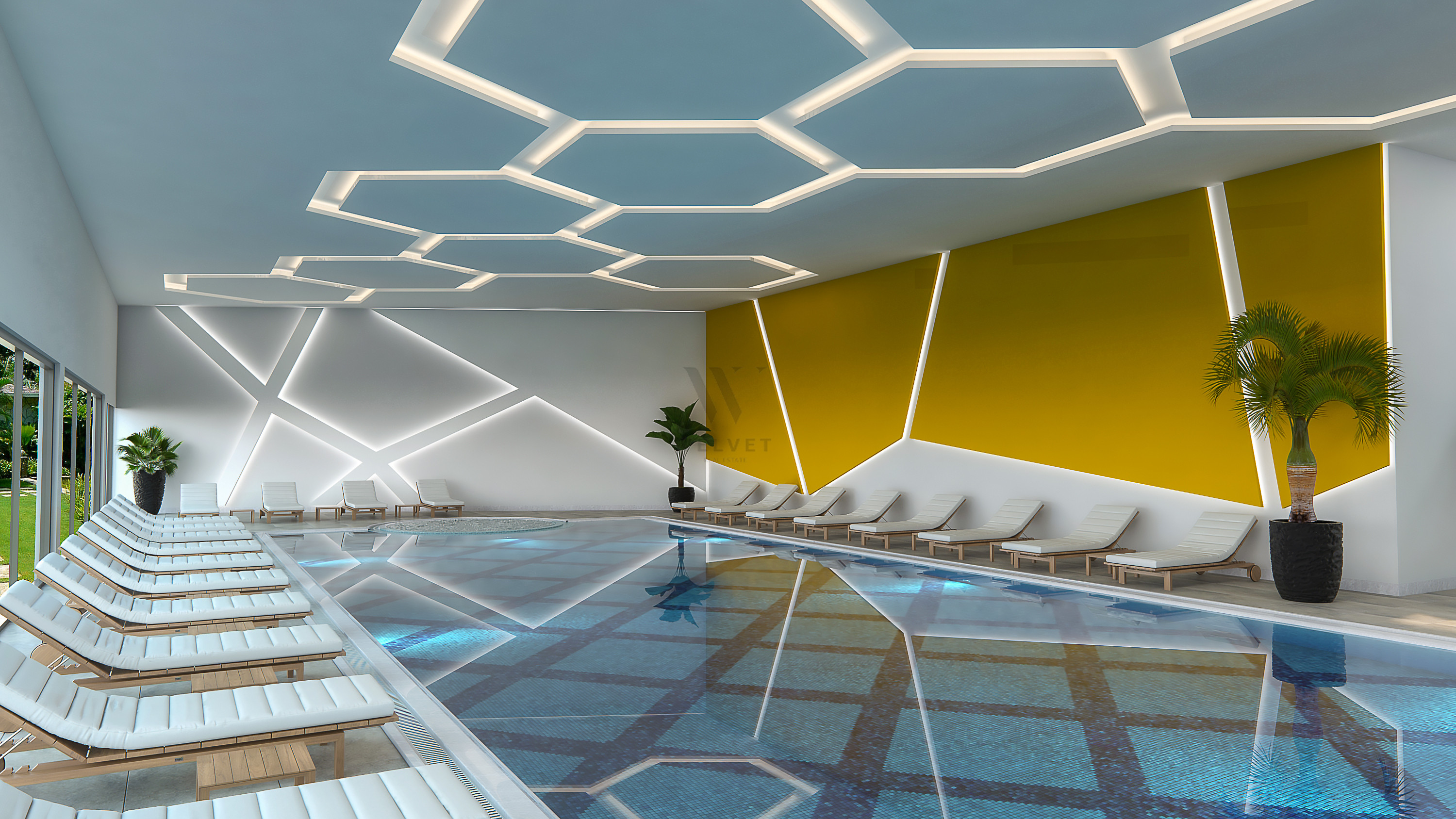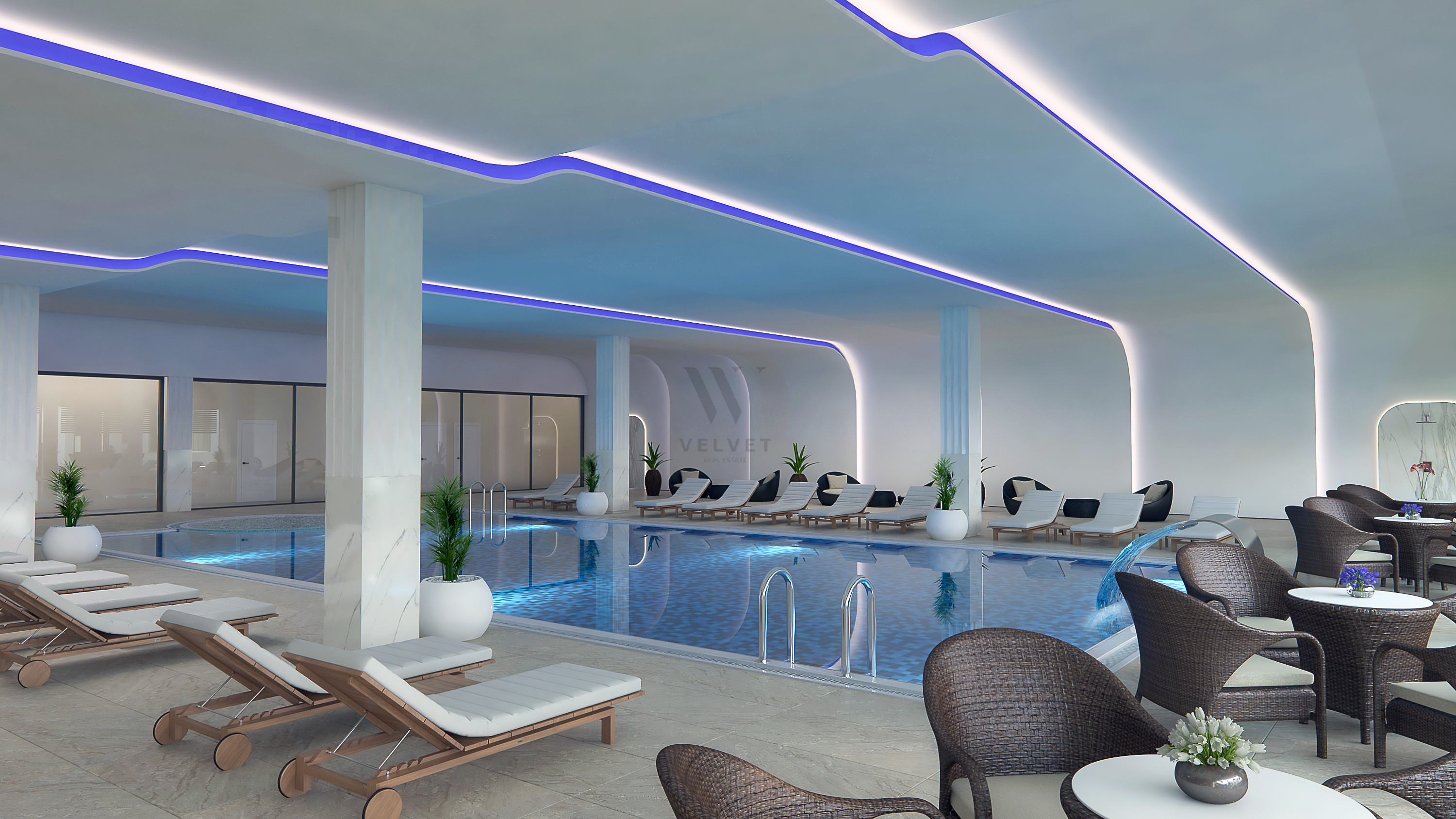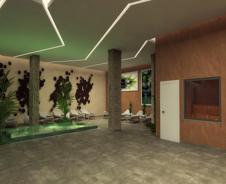 В СПА-салоне расположены: крытый бассейн, ресторан, османская баня (хамам), парная, сауна, соляная комната, кабинеты для массажа, комната отдыха, фитнес, пилатес-йога, бильярд, настольный теннис, сквот (теннис), кинозал, раздевалки и санузлы.