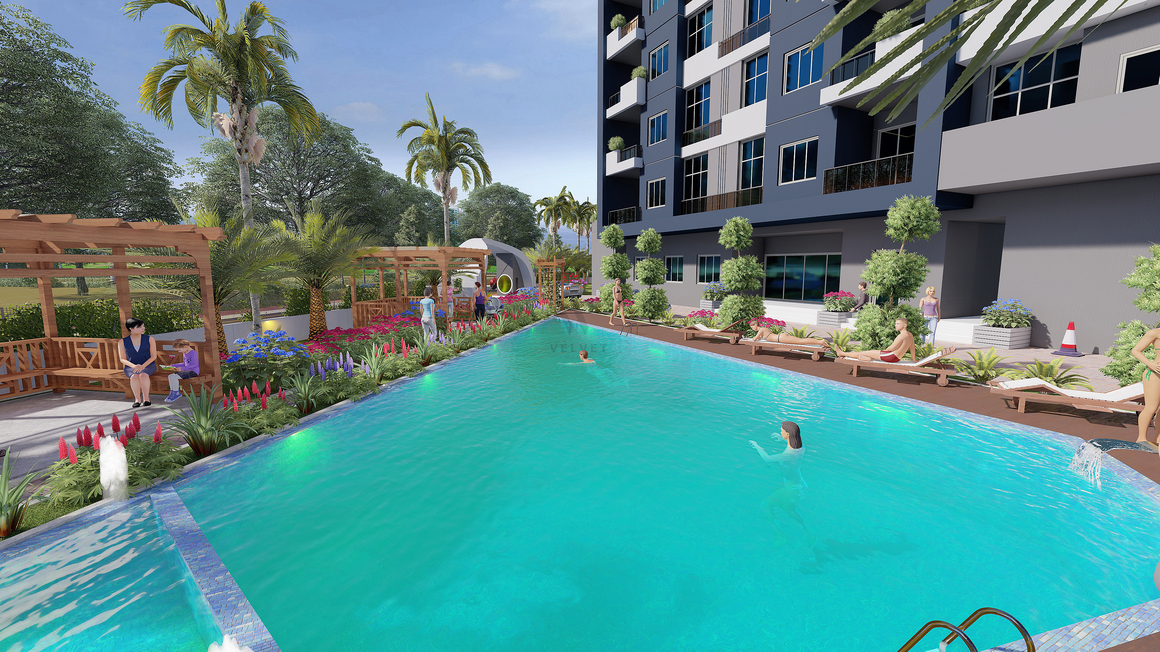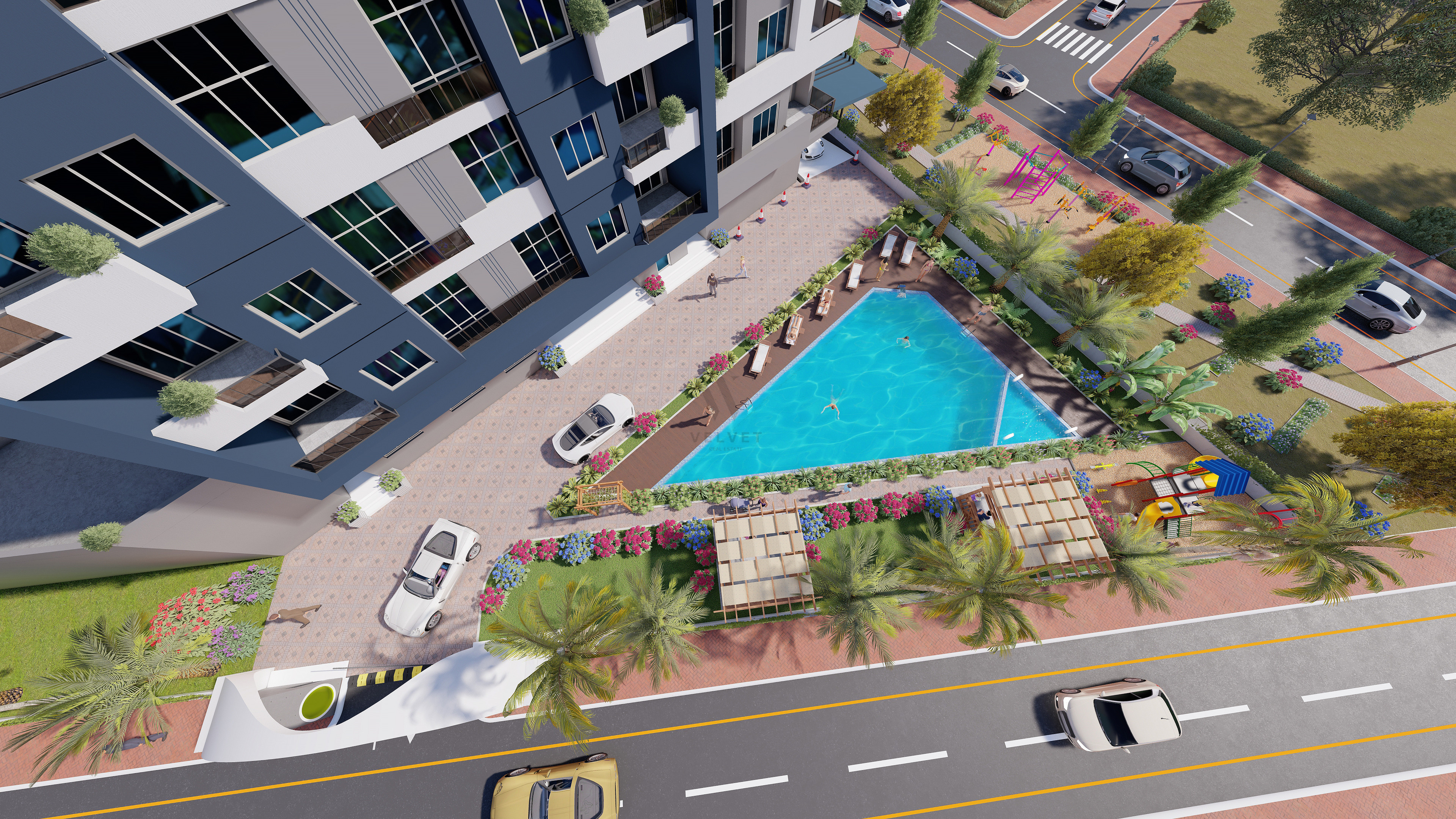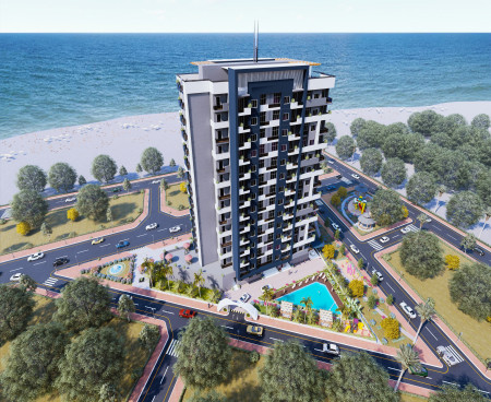 Единый блок, построенный на участке площадью 2350 м2, состоит из 91 квартиры. Квартиры состоят из 2+1 и 3+1. Расстояние до моря 650м. С 01.08.2022 по 31.12.2023