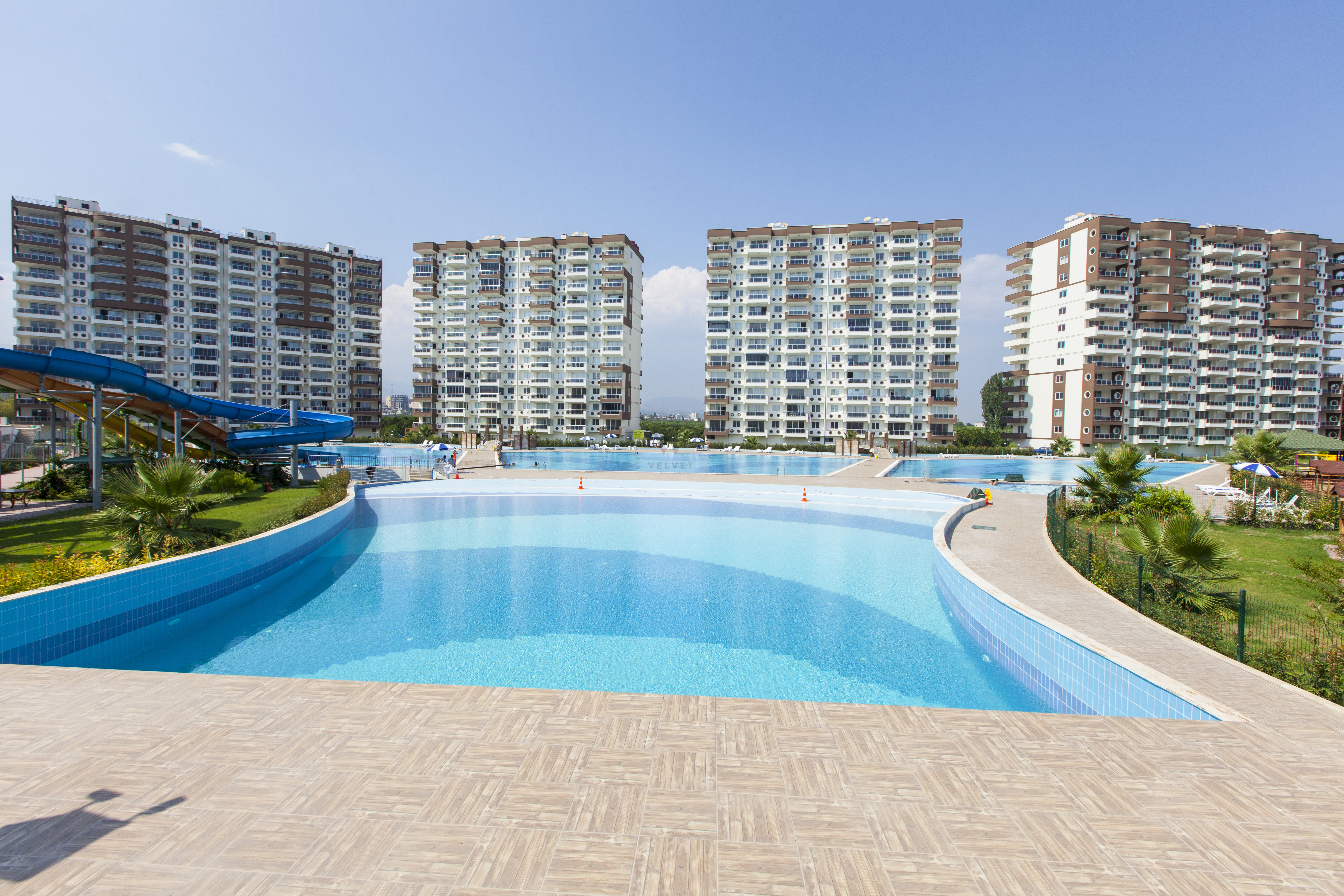 Наш проект, построенный на зеленой территории площадью 26 252 м2, состоит из 10 блоков и 336 квартир. В нашем проекте 12 этажей, на каждом этаже по 2 квартиры.