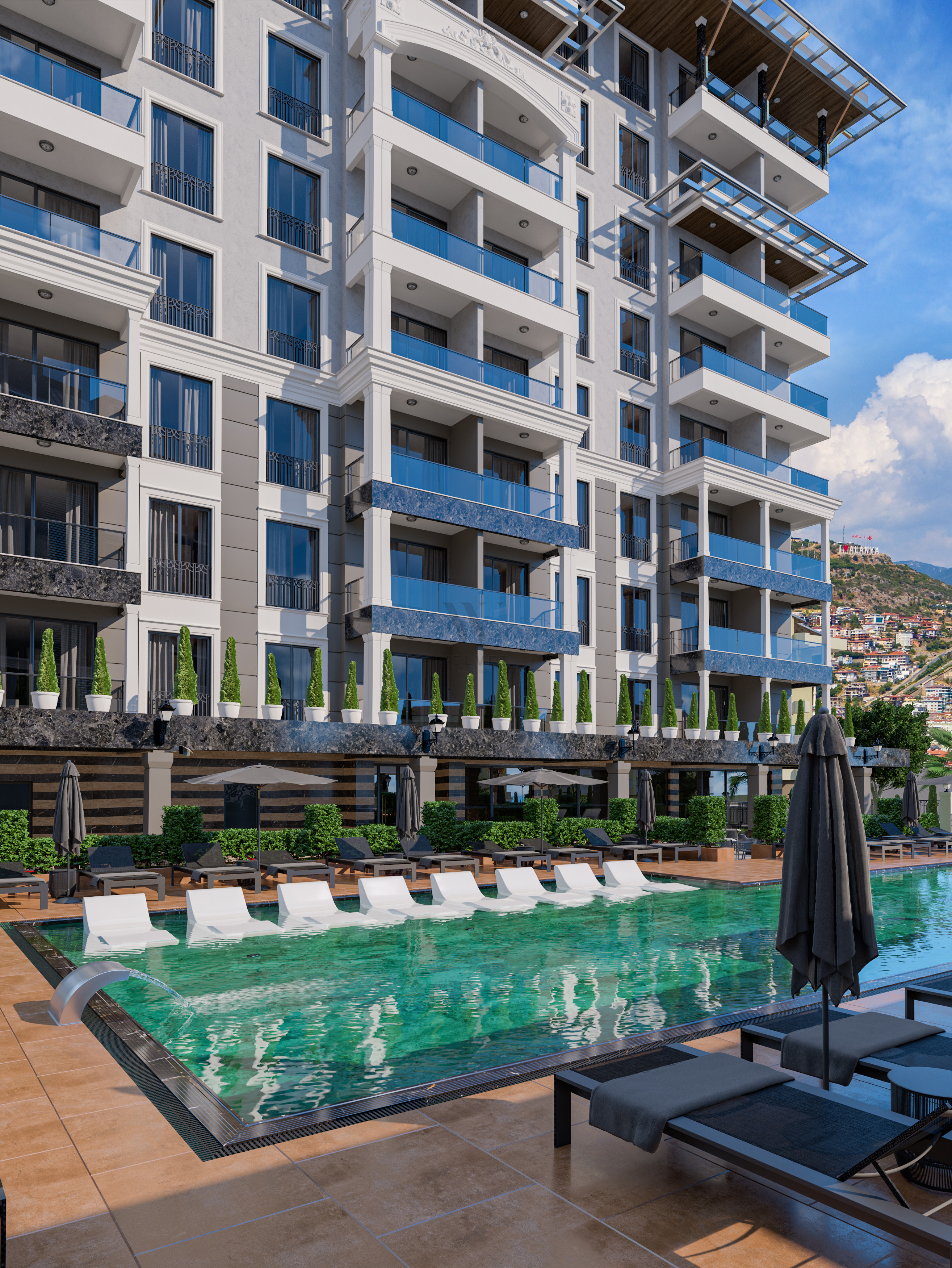 Наш проект, где вам будут соседствовать магазины, рынки, кафе и рестораны, находится всего в 1100 метрах от всемирно известного пляжа Клеопатры, отмеченного голубым флагом.
