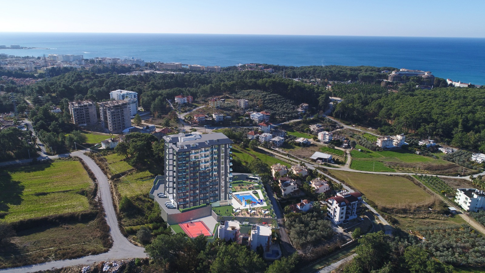 Наш проект, который будет построен на 5,150 м² земли, включает прохладный ветерок Таврских гор и построен среди сосен, в общей сложности 100 квартир, 1 блок, 10 этажей.