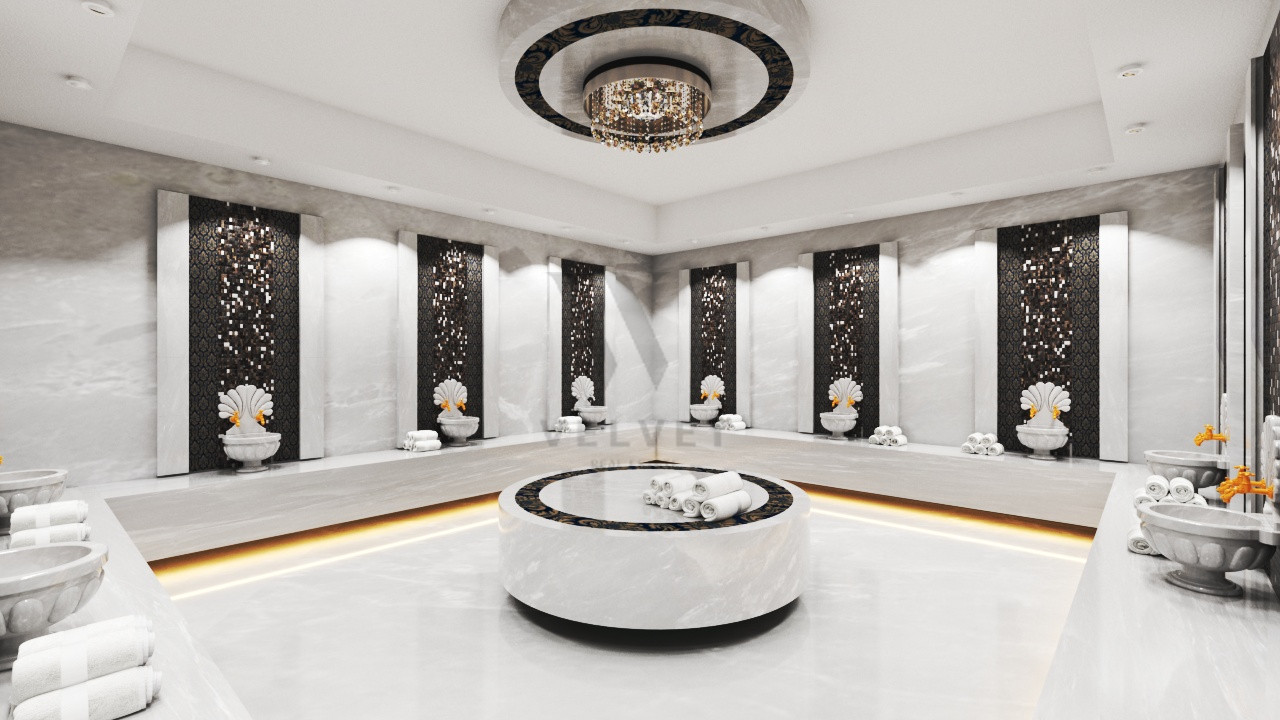 Открытый и закрытый бассейн, горка, спа-центр, турецкая баня, сауна, парная, комната отдыха, тренажерный зал, кинотеатр, кафе-бар, теннисный корт, баскетбольная и волейбольная площадки, детская площадка, игровая комната, круглосуточная охрана, охрана. камеры, парковка, генератор и бесплатный интернет.