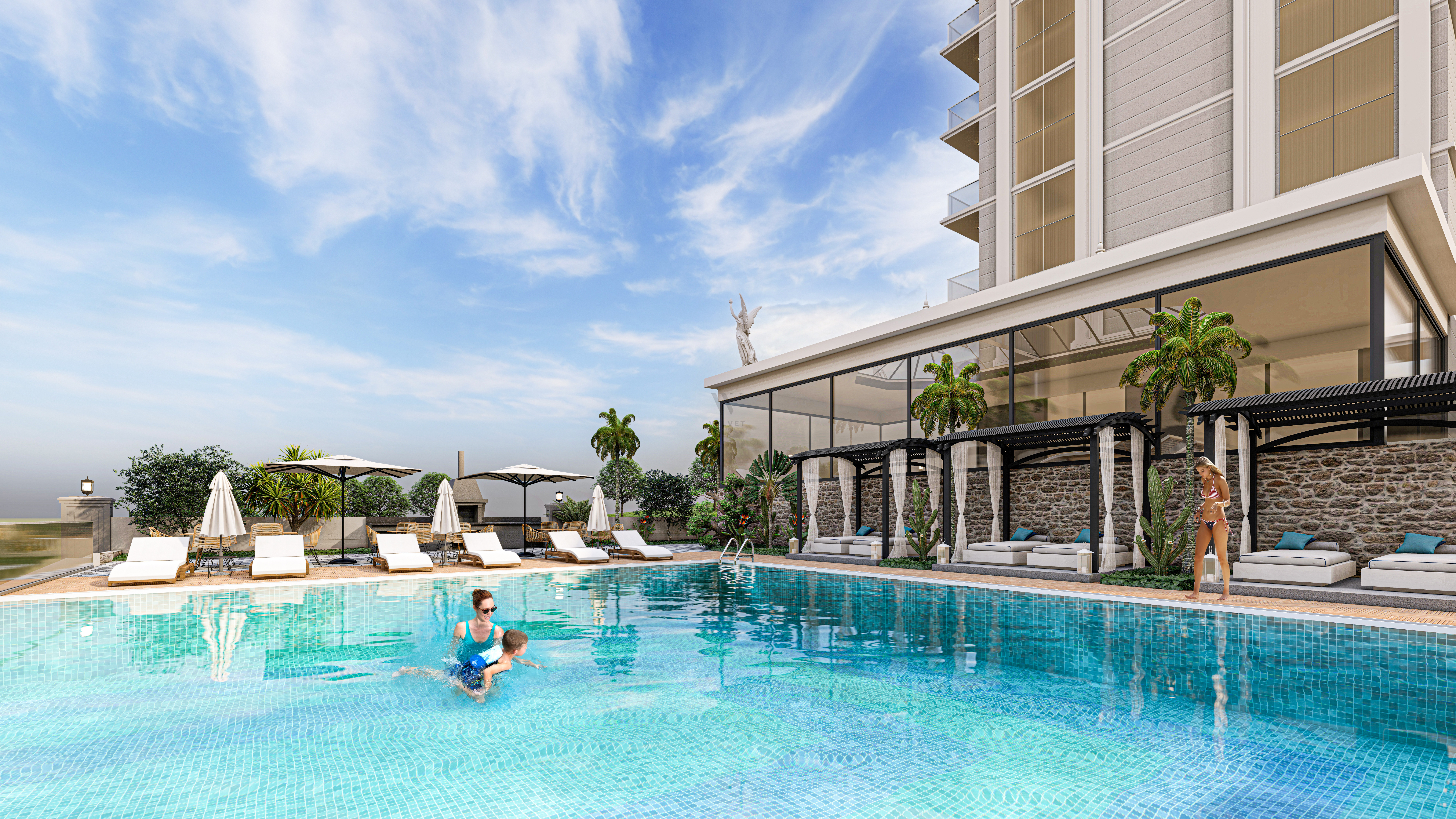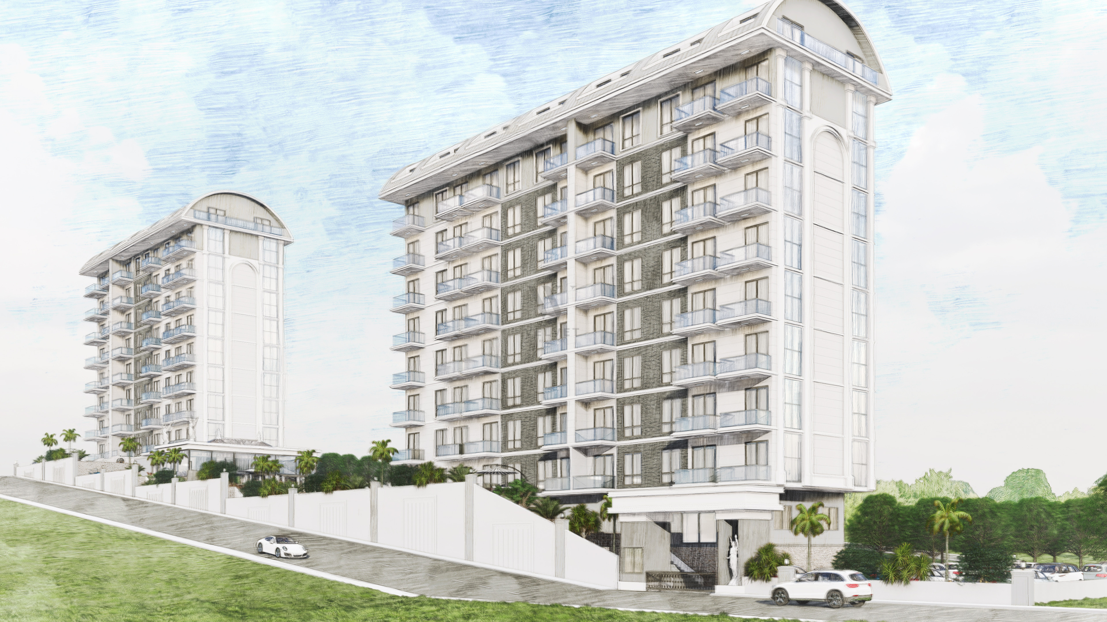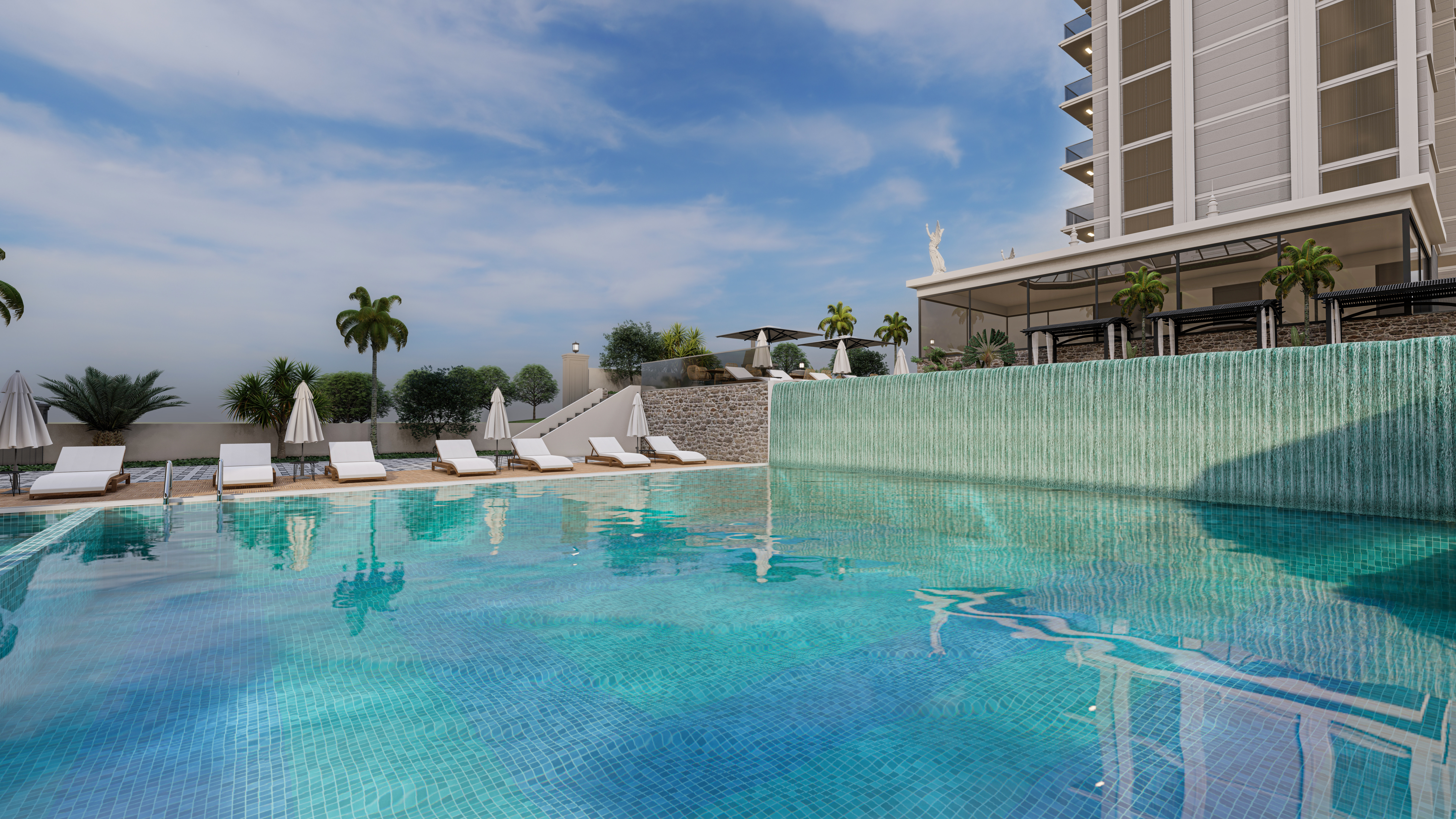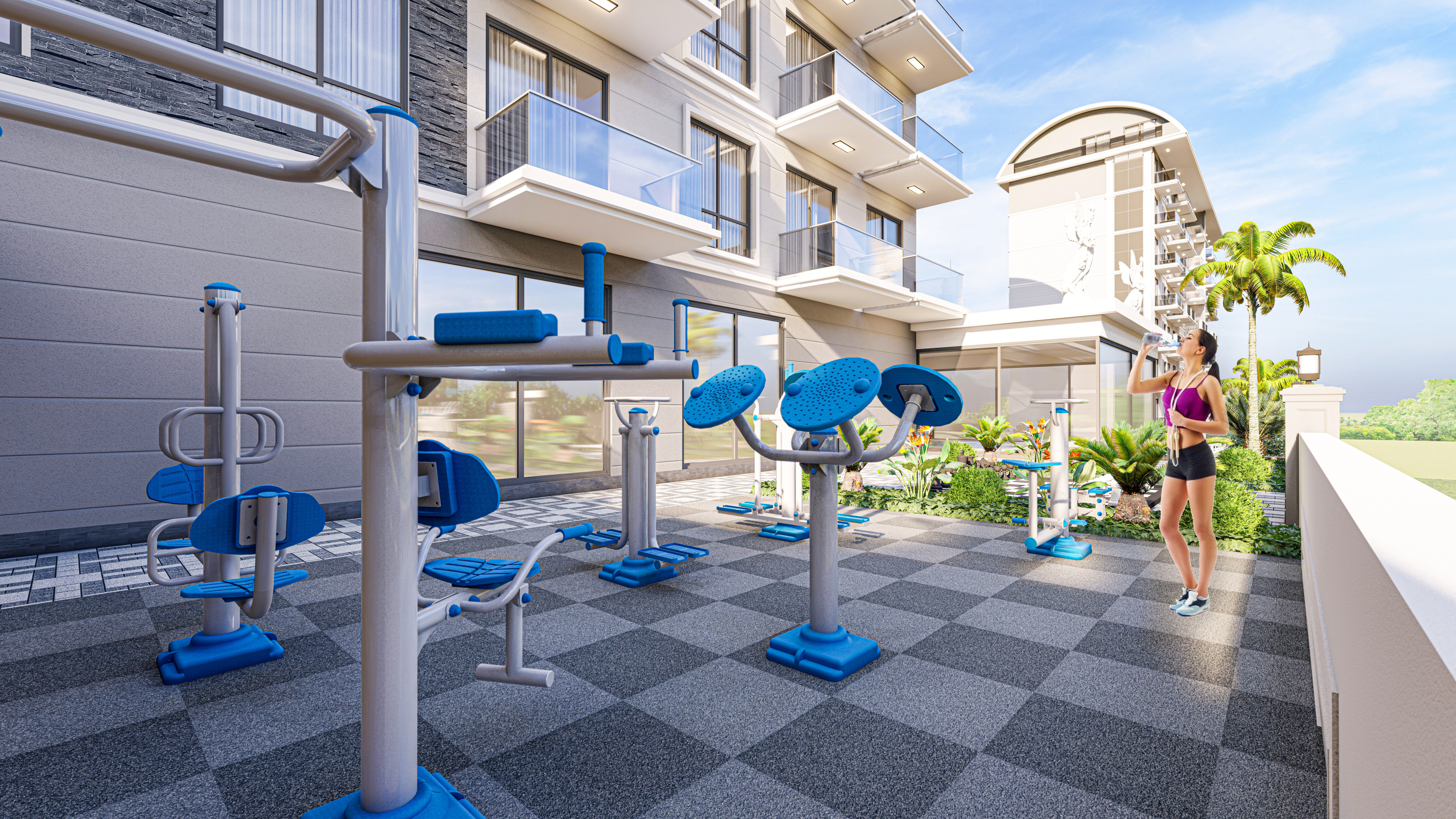 Комплекс построен на прямоугольном участке площадью 4302 м2. Благодаря структуре земель, инфраструктура проекта будет располагаться на террасах между двумя 9-этажными жилыми блоками, в каждом из которых есть отдельный бассейн и зона отдыха.