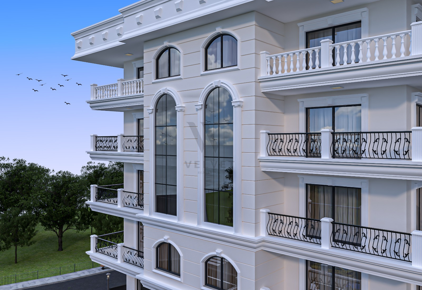 Имея энергетическую идентичность, будут установлены тепло- и гидроизоляционные фасадные и кровельные покрытия, облицовка здания, наружные столярные изделия, термостекло серии люкс антрацитового цвета, декоративная кованая входная дверь, запасной резервуар для воды и система повышения давления, наружная краска JUTON, визуальная и звуковой звонок, почтовый ящик, современный лифт, сертифицированный TSE, мраморные полы 1-го класса во внутренних холлах здания, изоляция между соседними квартирами, центральная спутниковая система...