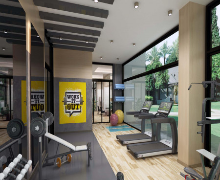 Есть фитнес, кафе-бар, сауна, паровая баня, джакузи, центральная гостиная, открытая автостоянка, генератор, бар у бассейна, крытая и открытая детская игровая площадка, садовое освещение, будка охраны как общие зоны использования на сайте. Круглосуточная охрана, женский/мужской душ, туалет...