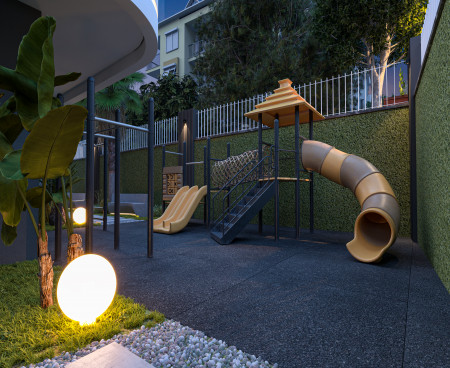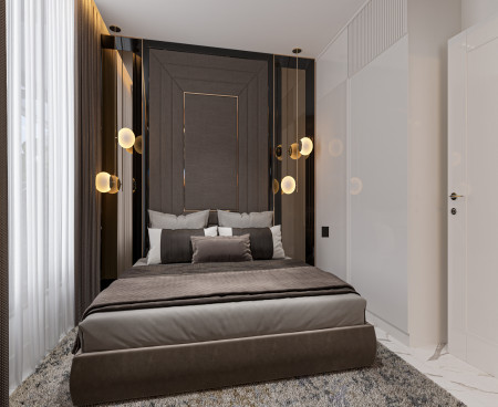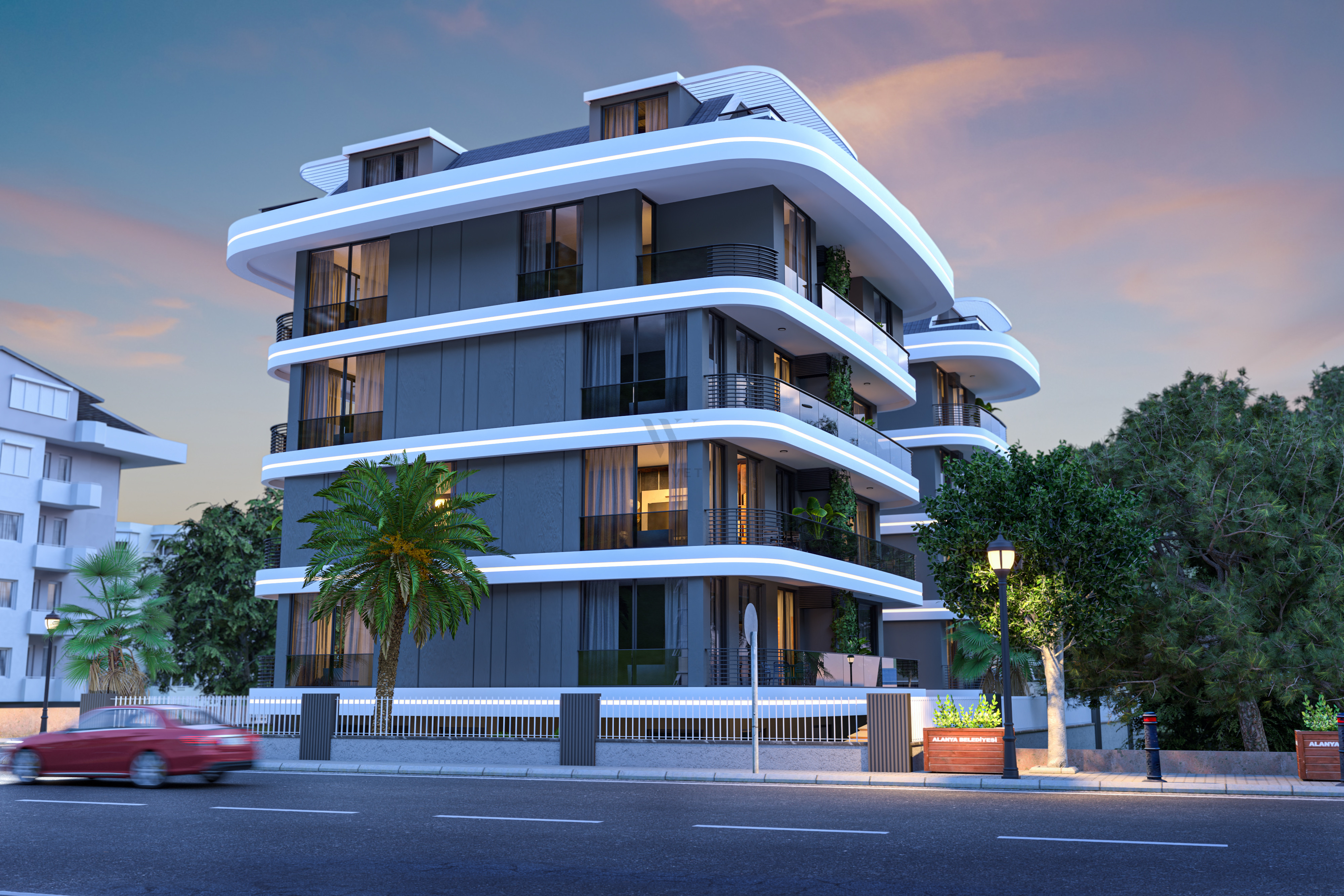 Проект состоит из одного четырехэтажного блока и 28 квартир. Есть квартиры 1+1 площадью от 44м2 до 67м2 и пентхаусы с тремя спальнями площадью от 144 до 198 кв.м.