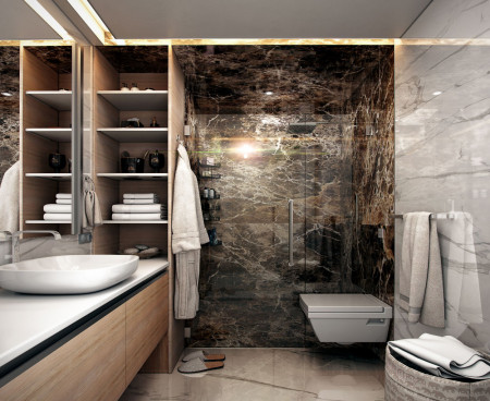 Технические характеристики проекта включают акриловые кухонные шкафы и гранитные столешницы, систему горячего водоснабжения, стандартные полы с подогревом в ванных комнатах, алюминиевые балконные двери и окна, балкон с двойным остеклением с тепло- и звукоизоляционным комфортным стеклом, звуко- и теплообмен между стенами. Он включает в себя множество функций, таких как системы дверных замков со считывателем отпечатков пальцев на дверях, видеодомофон и социальное вещание во всех квартирах, безлимитный Интернет и центральная спутниковая система.