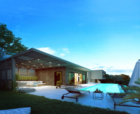 D ВИЛЛА 4 + 1 Общая площадь 783 м2 Закрытая площадь: 573 м2 Закрытая парковка 77 м2 Открытая площадь 622 м2 Садовая терраса (твердая земля) 60 м2 Декоративный бассейн 45,7 м2 Бассейн 54 м2 Зеленая зона 463 м2 Длина бассейна 15 * 4 м .