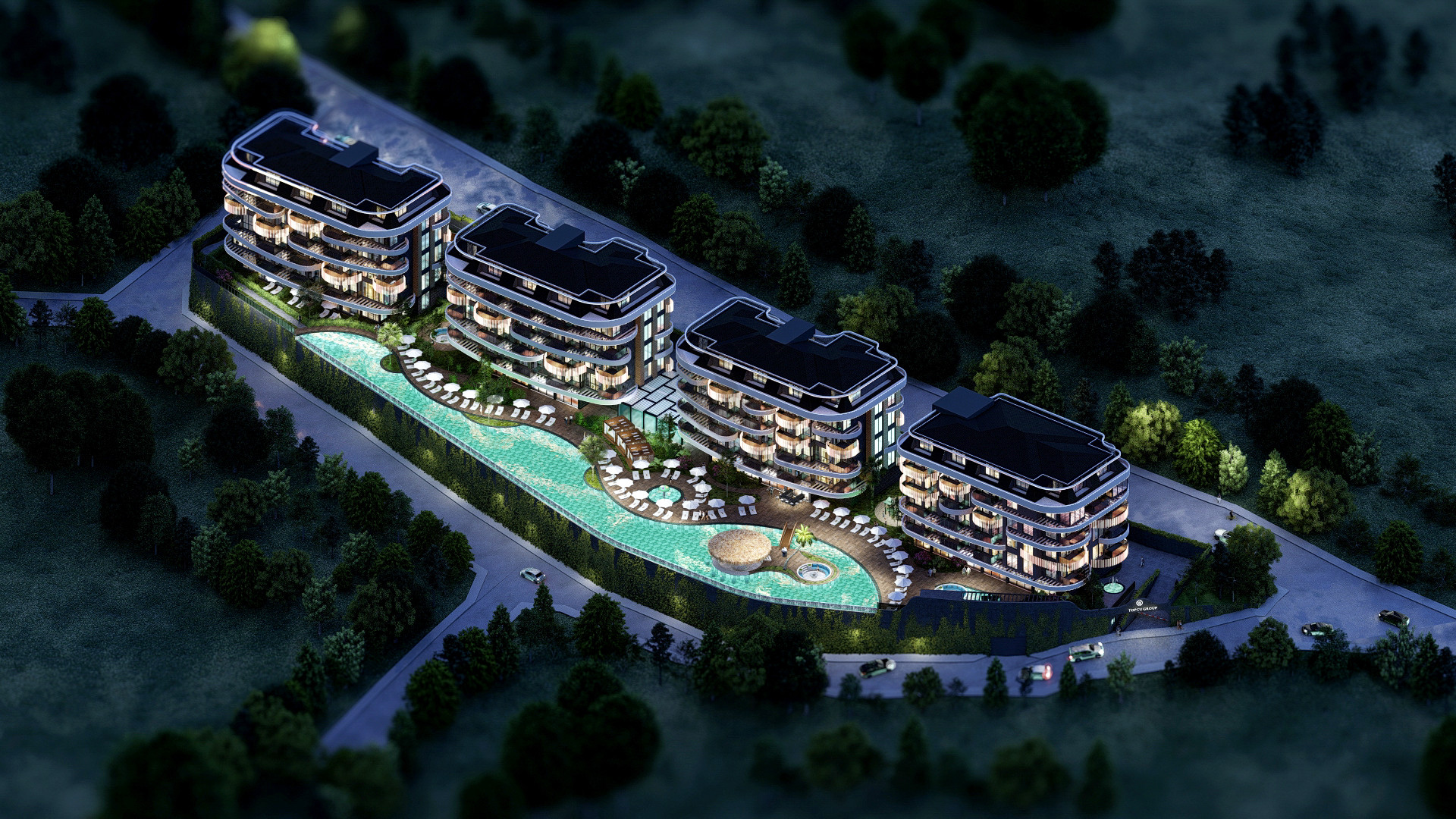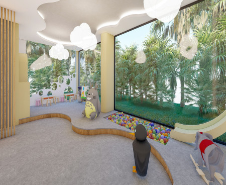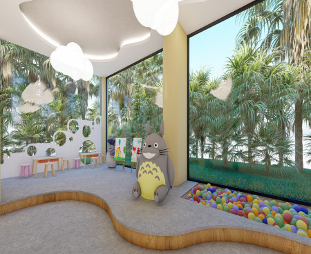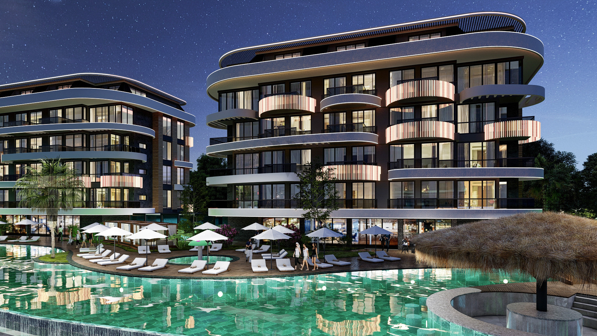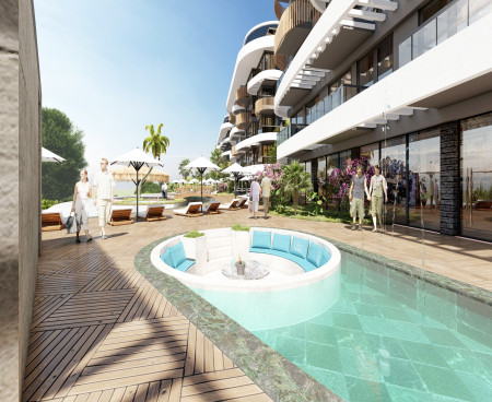 Комплекс имеет огороженную охраняемую территорию, крытый бассейн,большой открытый бассейн-инфинити на протяженности всей территории, сад с цветами, пальмами и декоративными растениями, детскую площадку, фитнес-зал, теннисный корт и многое другое. Так же на территории комплекса будет ресторан, кинотеатр.