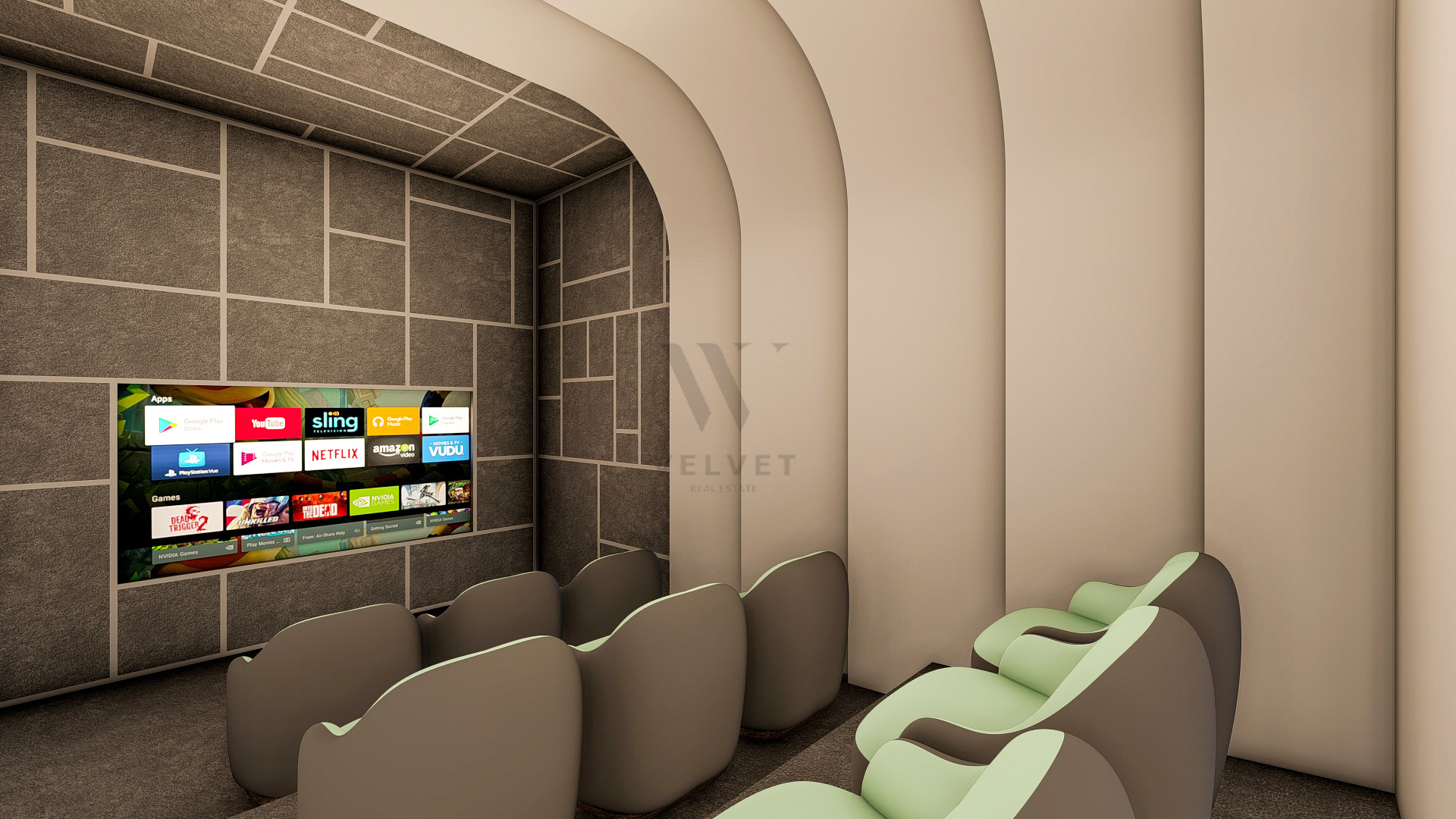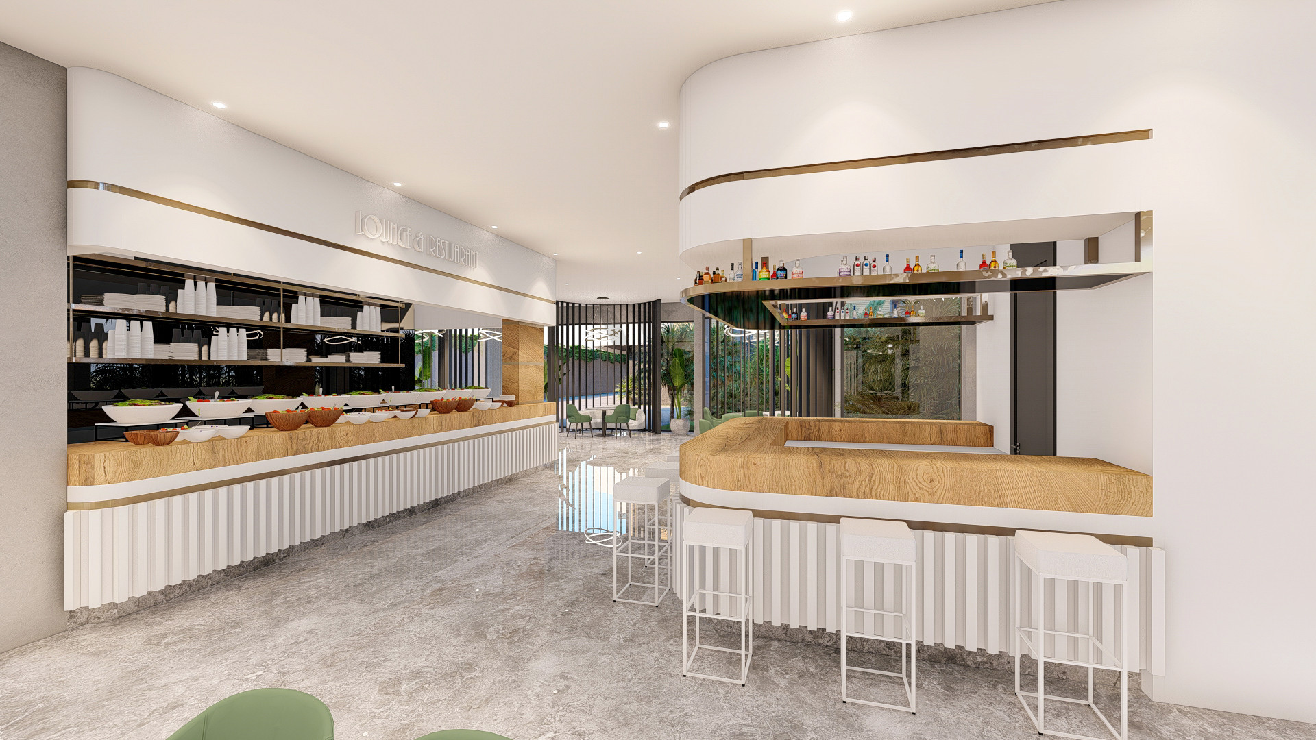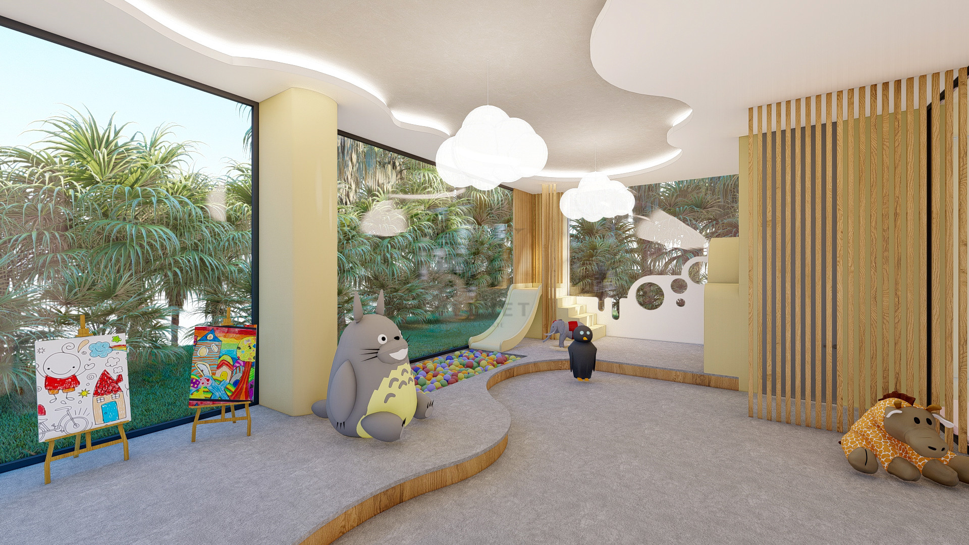 Комплекс имеет огороженную охраняемую территорию, крытый бассейн,большой открытый бассейн-инфинити на протяженности всей территории, сад с цветами, пальмами и декоративными растениями, детскую площадку, фитнес-зал, теннисный корт и многое другое. Так же на территории комплекса будет ресторан, кинотеатр.