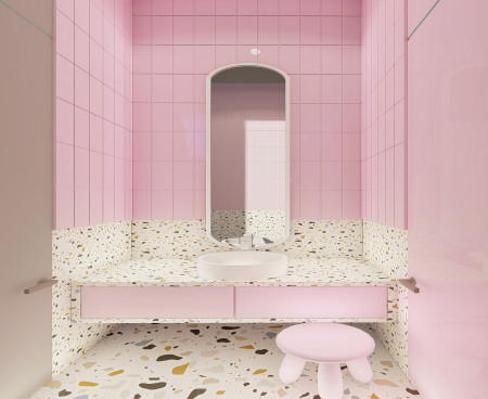 • Встроенная лакированная мебель в ванной комнате