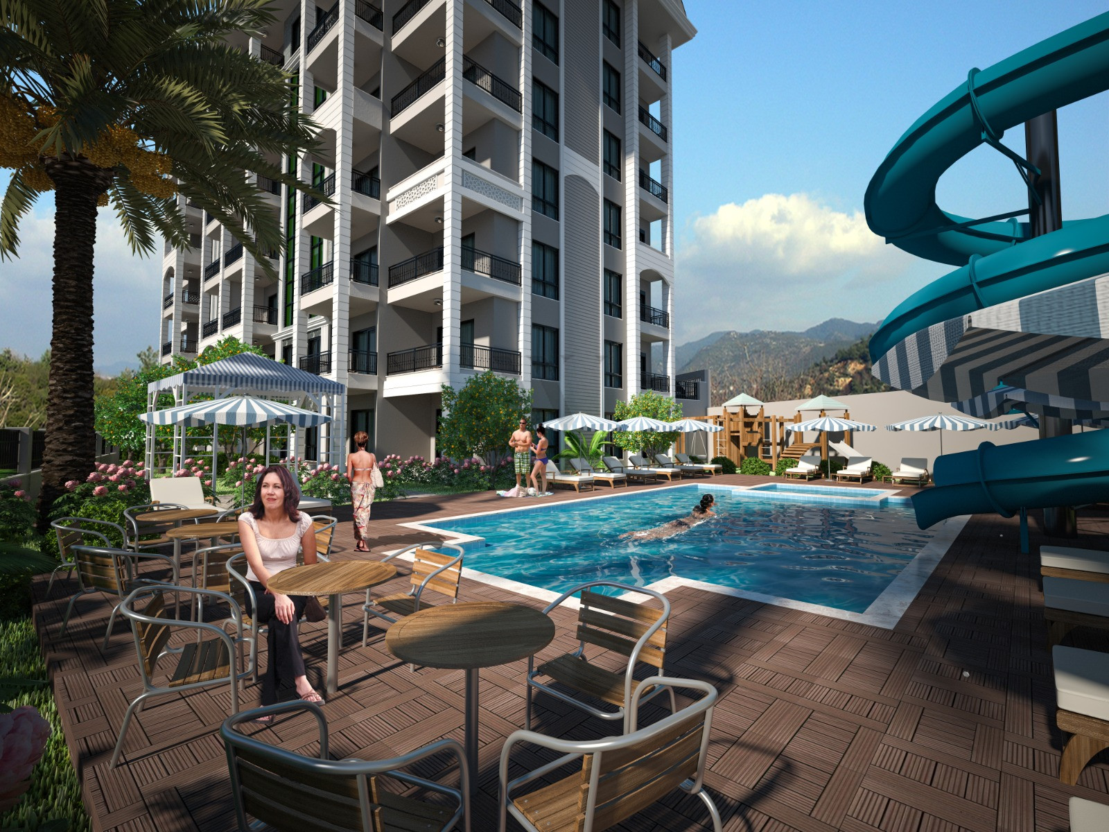 Участок расположен в тихом и спокойном районе, вдали от хаоса и городского шума, вдали от отелей. Сайт также создан с учетом всех необходимых потребностей. Близко как к центру, так и к магазинам. Расстояние до моря 1500 метров. Также есть частный пляж для жителей участка.