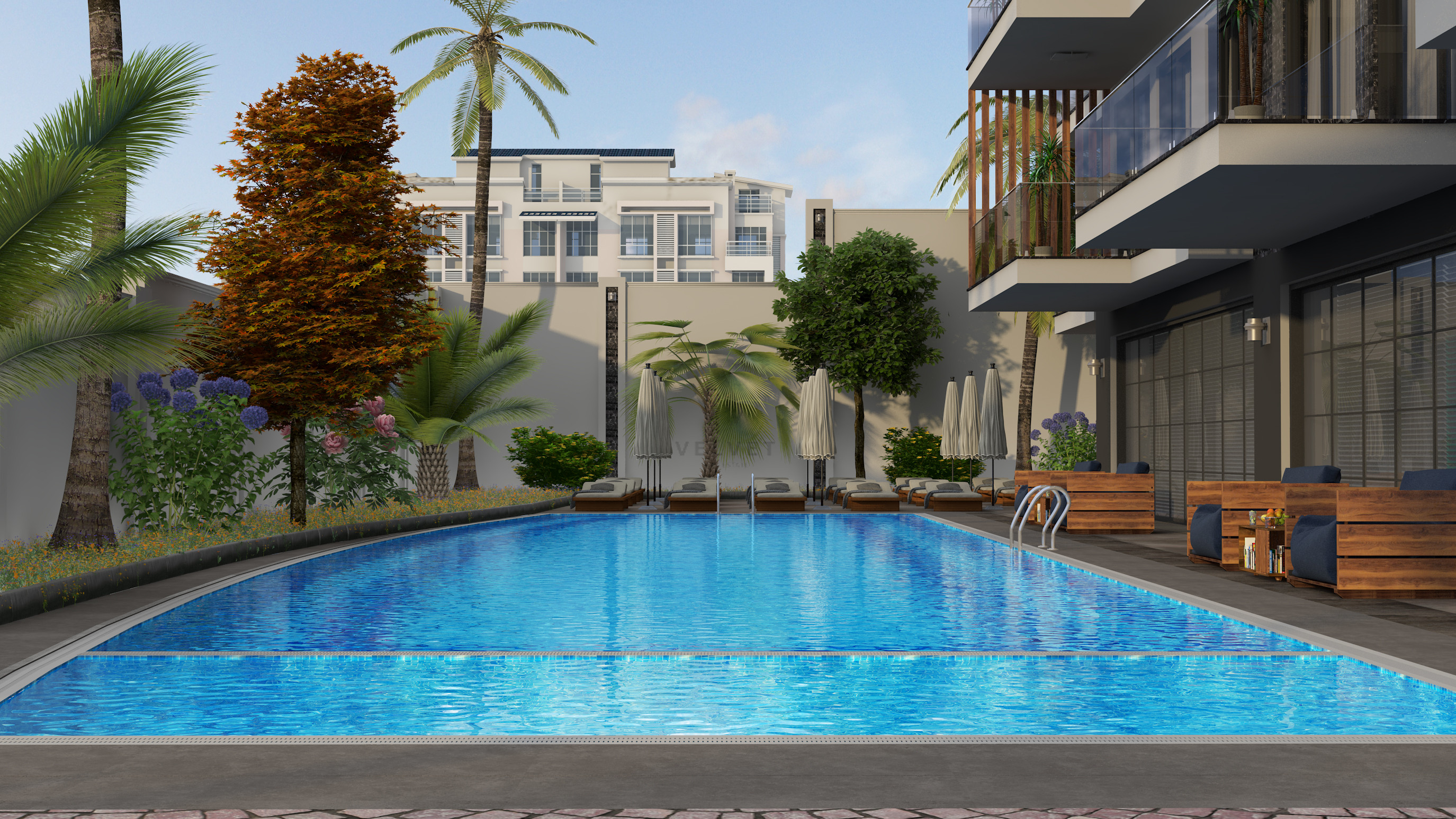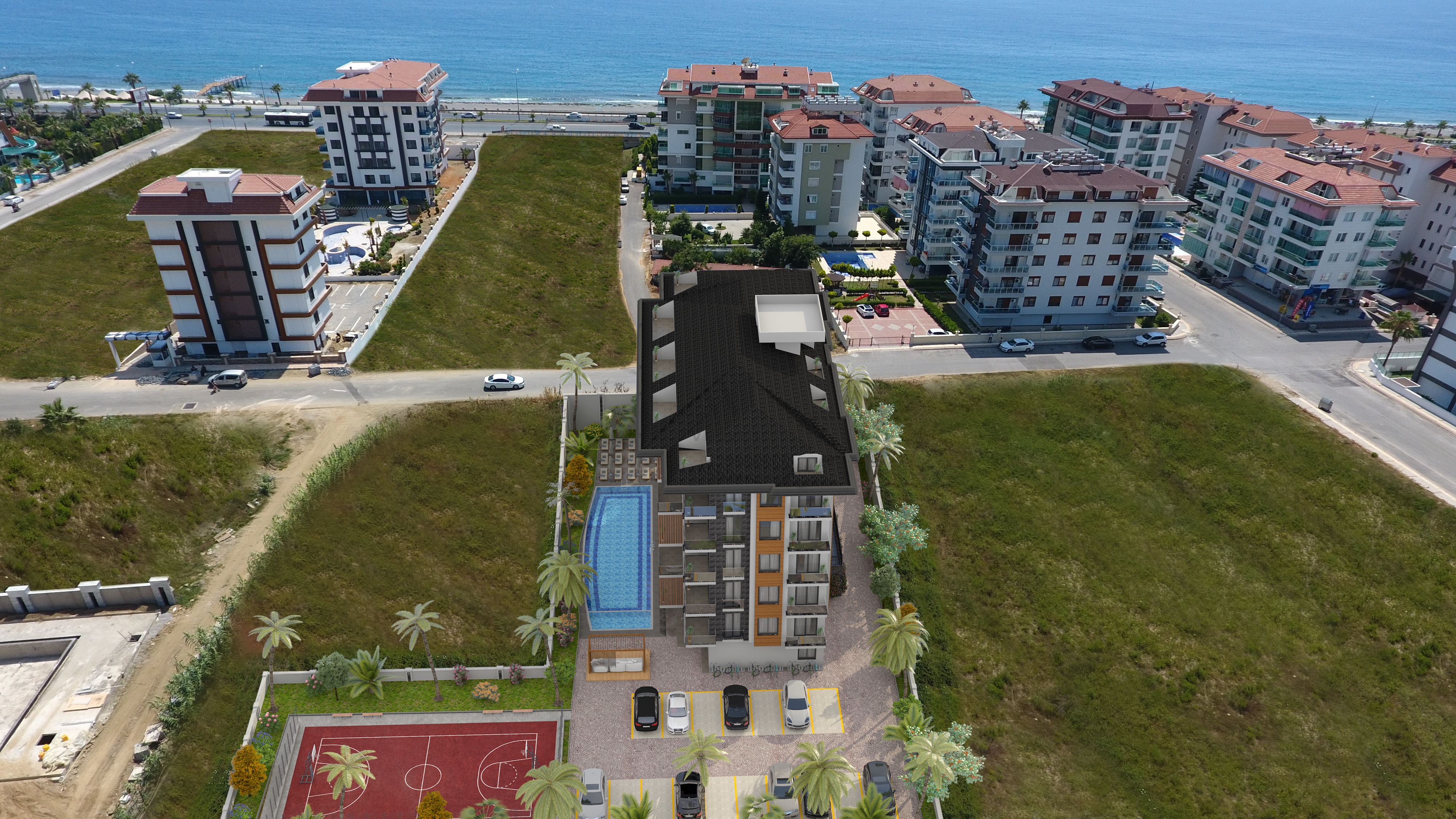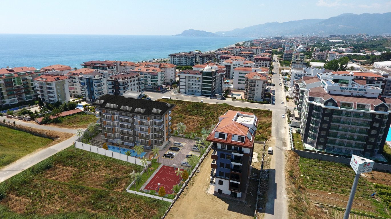 Проект расположен в районе Кестель города Алании. Он находится в 100 м от побережья Средиземного моря, в двух шагах от супермаркетов и главных улиоц.