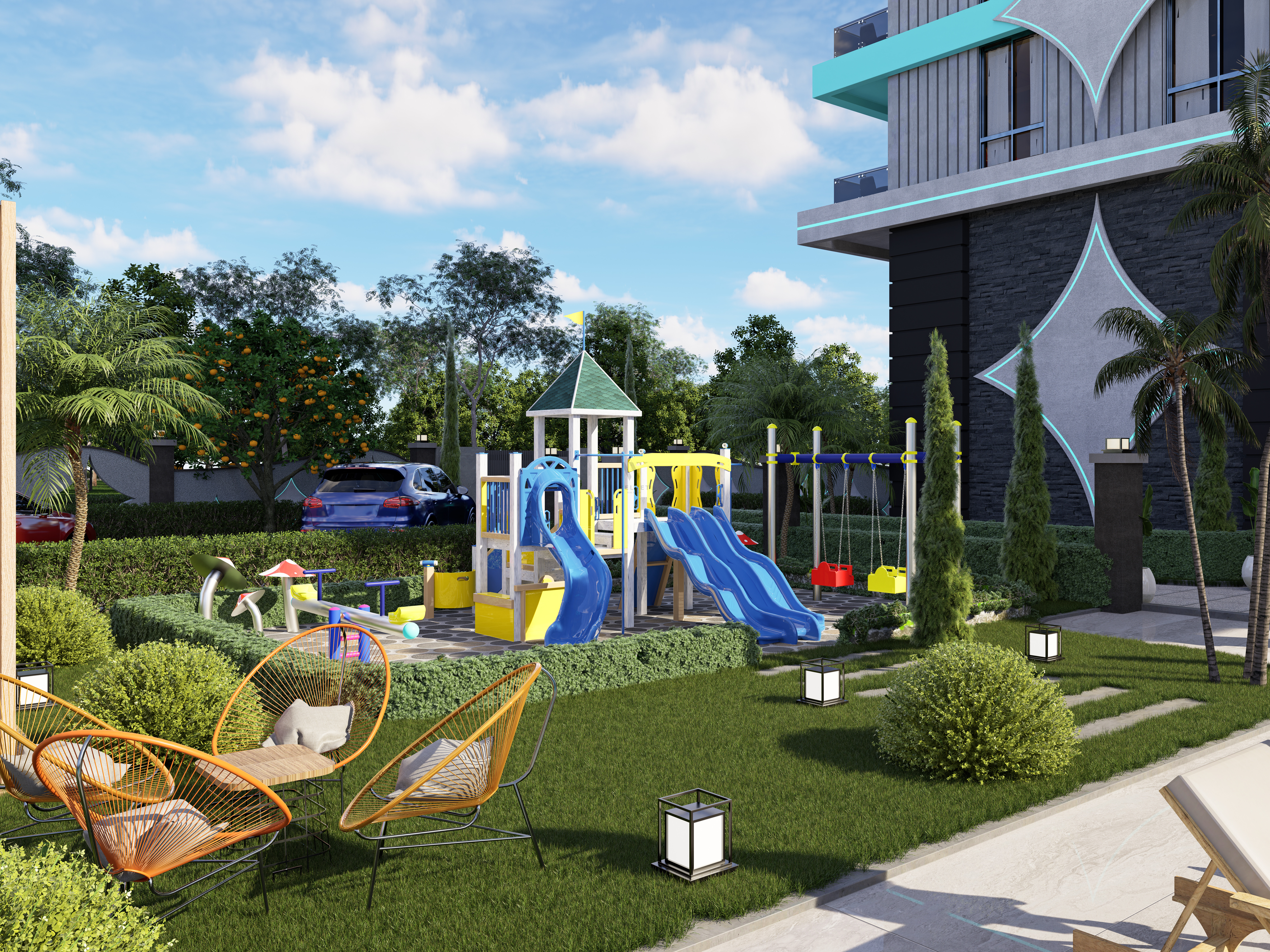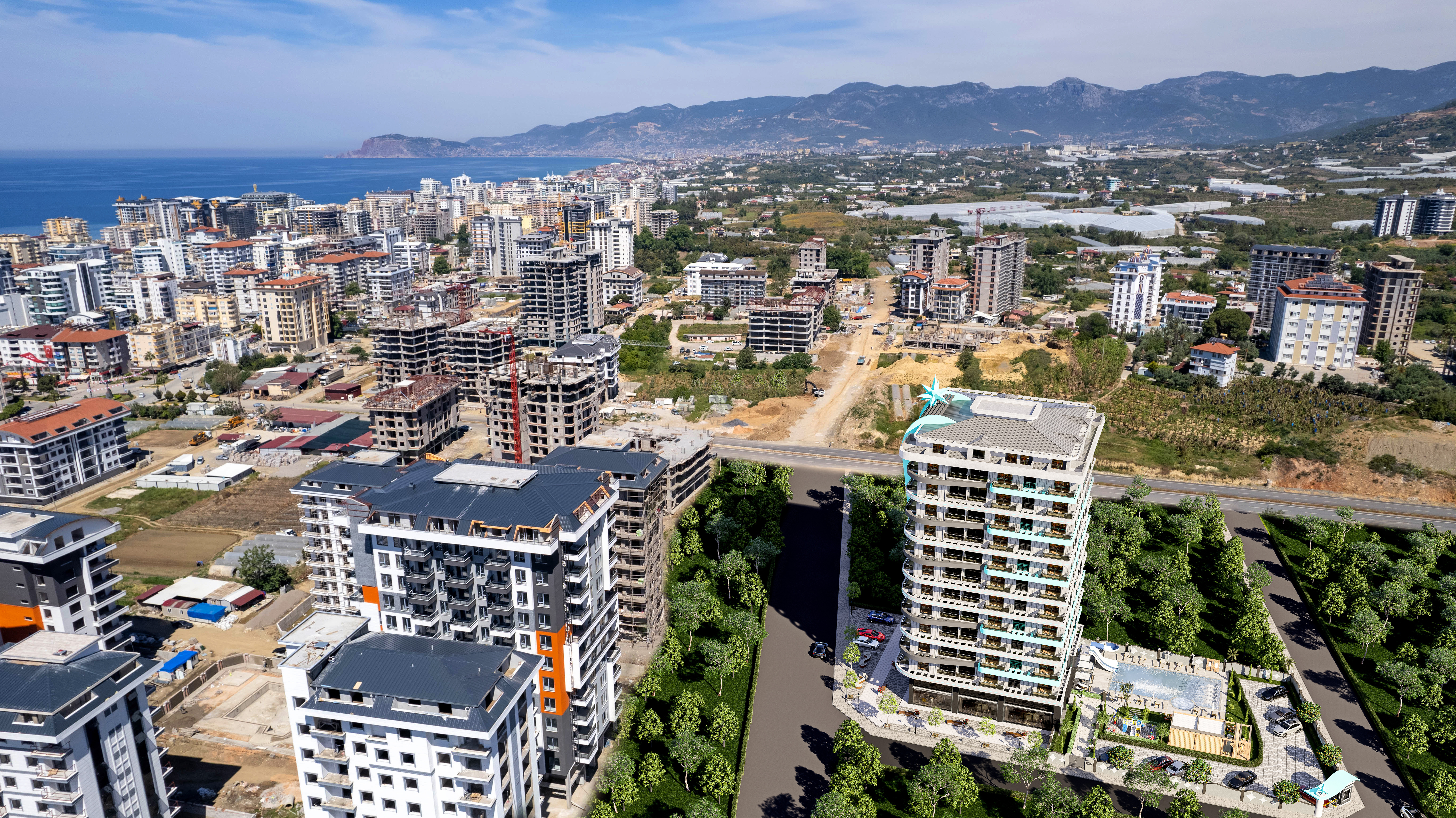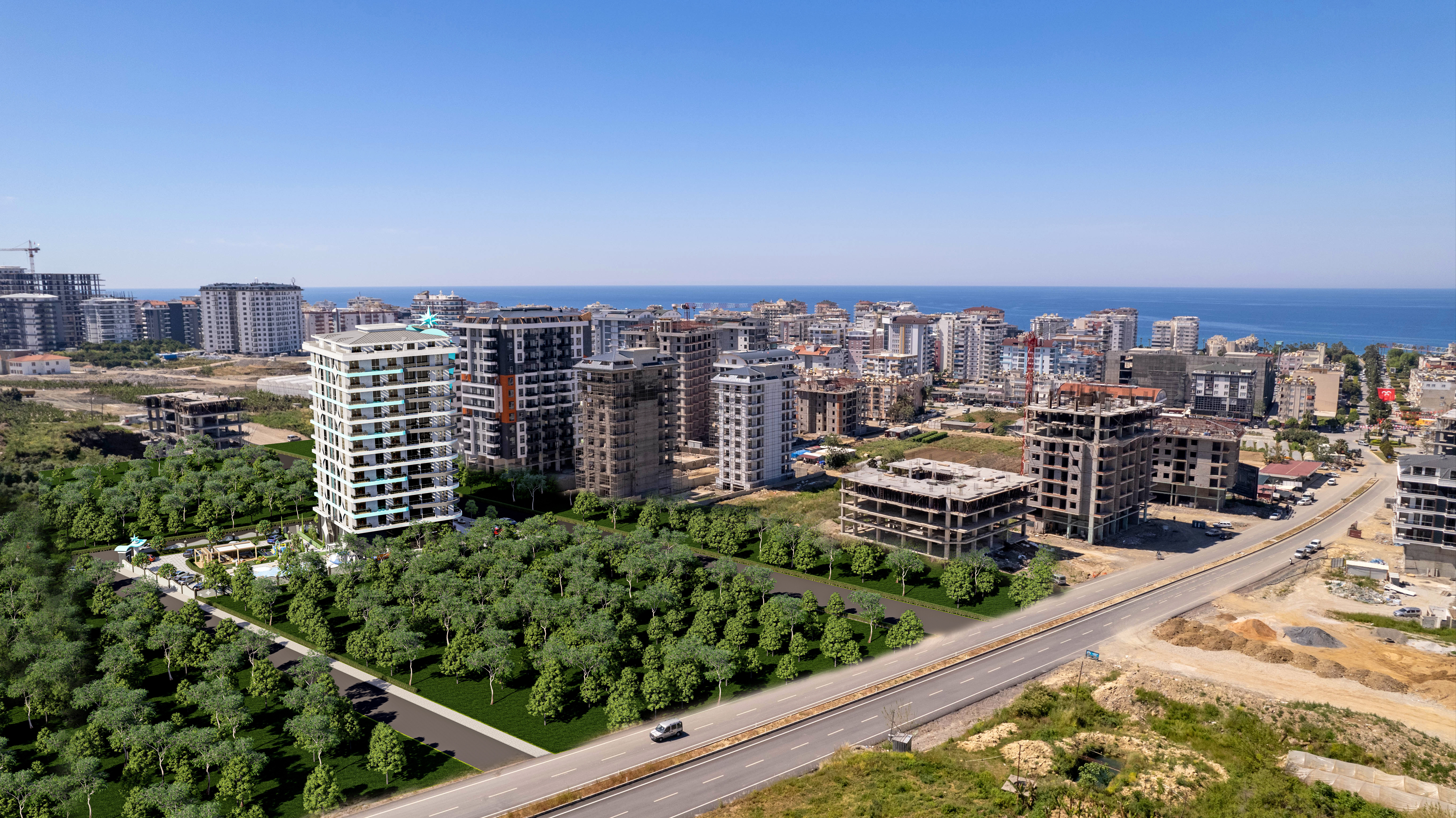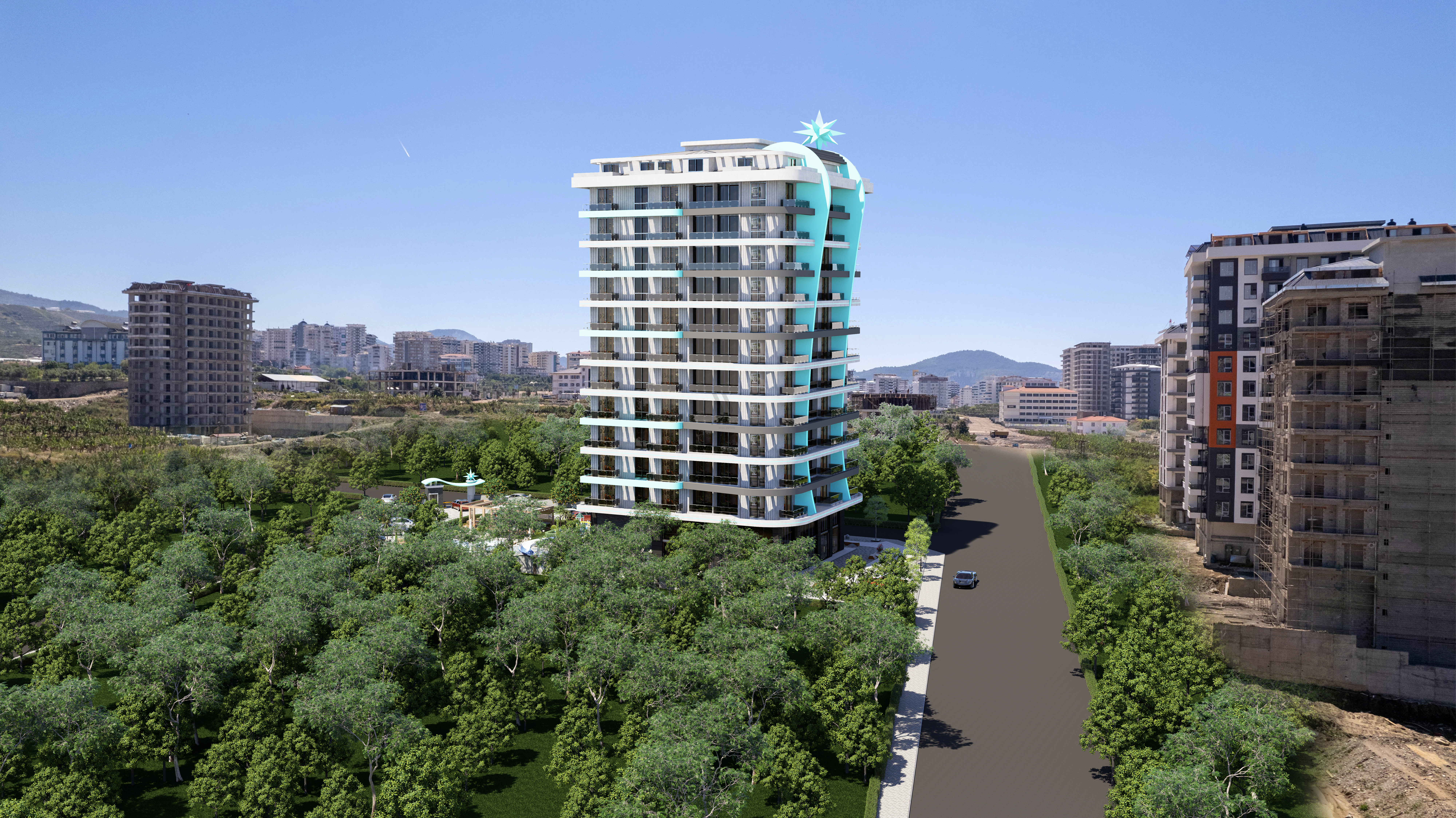 Проект расположен в одной из самых быстрорастущих артерий города, где будут располагаться только новые комплексы с множеством кафе, магазинов, рынков и других объектов городской инфраструктуры. Это место сочетает в себе преимущества городского образа жизни и наслаждения природными красотами Аланьи (море, горы, апельсиновые сады).