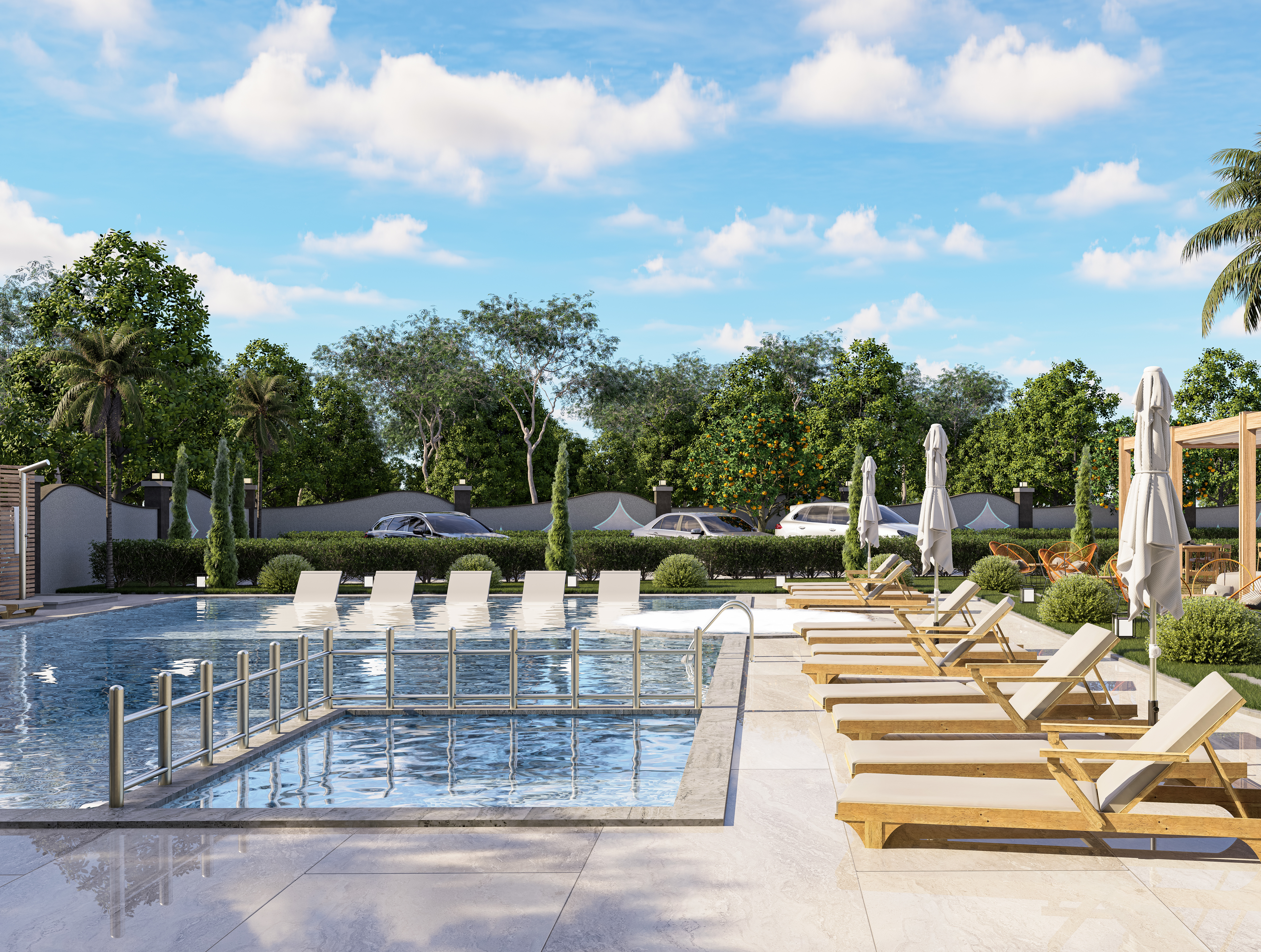 Площадь земельного участка составляет 2630 м2, что позволяет разместить максимальное количество объектов инфраструктуры для комфортного отдыха и постоянного проживания: