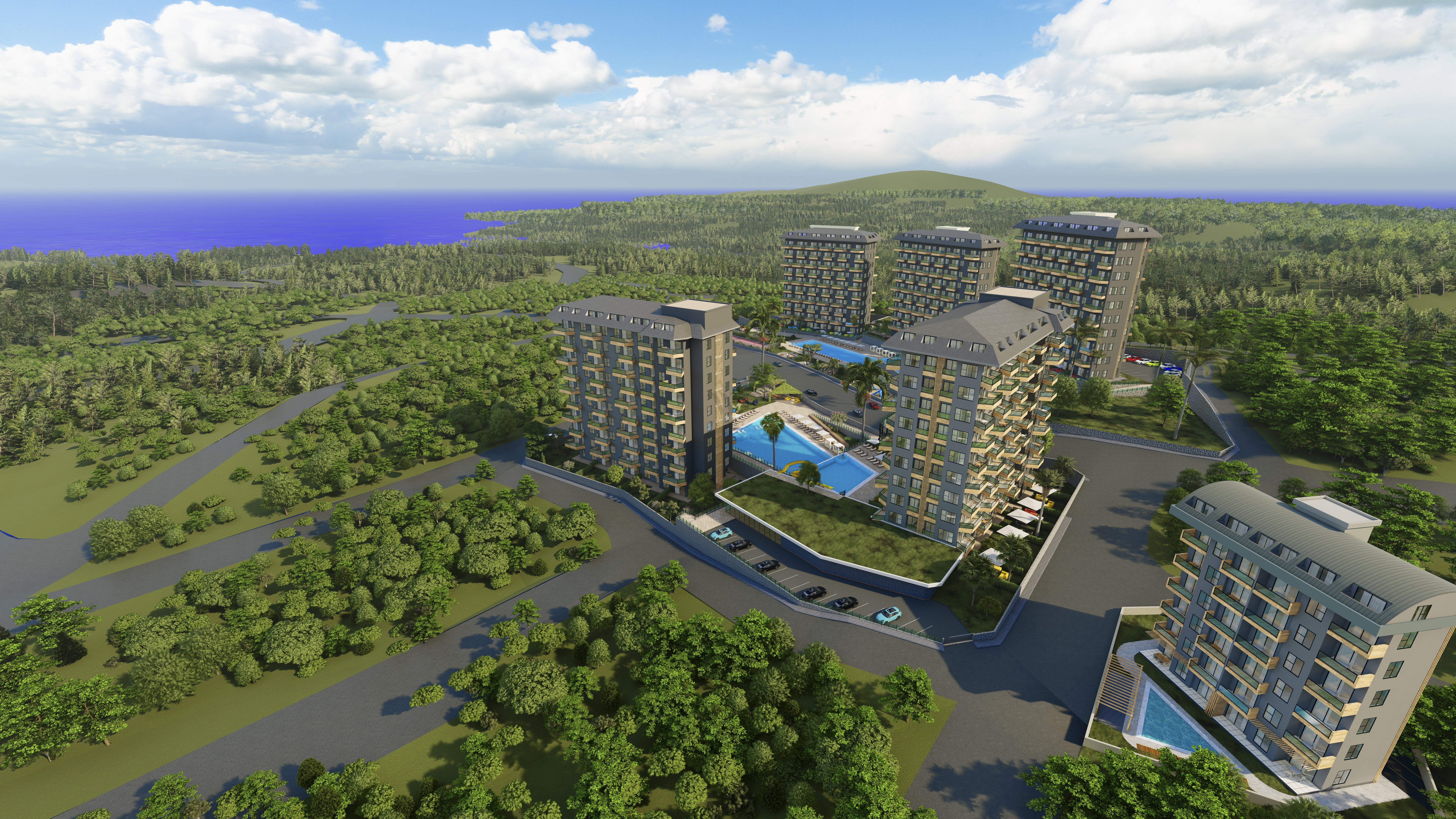 Мы строим для вас комфортабельный и уютный комплекс на берегу Средиземного моря в окружении густых сосновых лесов, которые наполняют морской воздух целебными фитонцидами и дарят вам ощущение покоя и безмятежности.